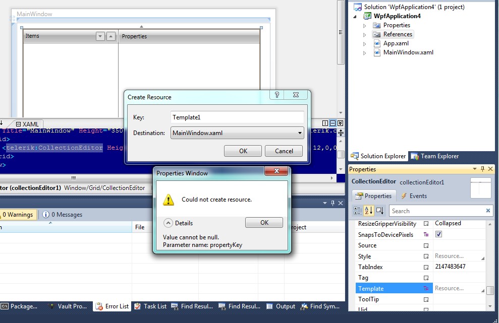 5. In the properties window look for the Template Property and right click it, choose Extract Value To Resource