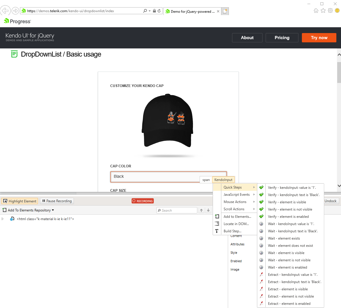 Do we have translator for Kendo Dropdown list in Telerik Test Studio ?