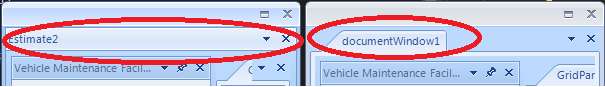 TabsDocked image shows the tabs appear correctly when docked, HostWindow is Estimate2, the DocumentWindow is documentWindow1