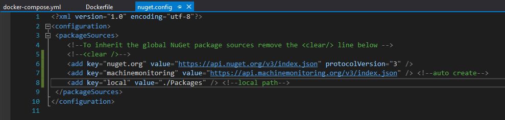 I've read that I need a nuget.config file. I created this with the command "dotnet new nugetconfig". Then I added the package source "local" and "nuget.org". "local" refers to the folder "Package" that I created in the project folder and into which I copied the nupkg file. (see picture 3)