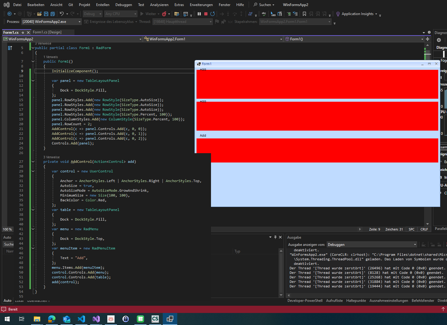 - Create a UserControl, dock a RadMenu to Top and another control to Fill.