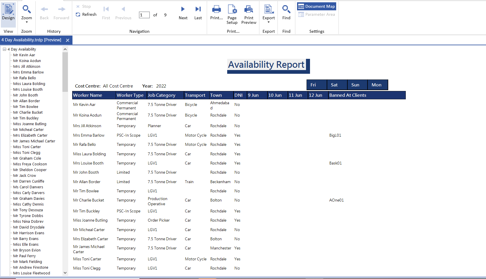 Is the document map displaying when you preview the report in any of the report designers?