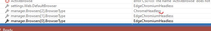 Thank you for your feedback Elena. I am trying if I can run two cases at the same time, one with ChromeHeadLess, and the other one with EdgeChromiumHeadless. Seems they will not be affected. Will let you know testing result later.