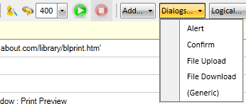 During recording, when you encounter dialogs, such as save / file upload / file download, etc.., handler steps are inserted into your test script automatically. If you are experiencing a problem with a handler step that has been inserted for you, you can add your own generic handler which can be inserted via the Record tab's ribbon. When you insert the generic handler, be sure to set the appropriate properties in the properties pane, specifically the Dialog Identification properties.