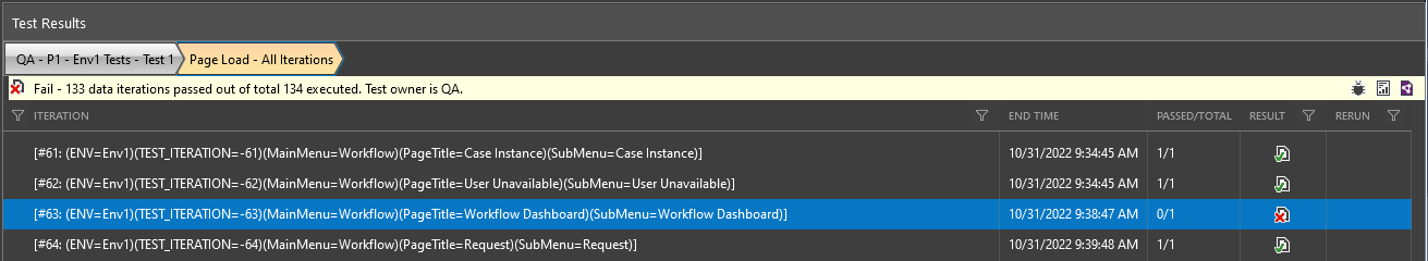 I have enabled the option to "Rerun Failed Tests" and while this works, it would be ideal if it only reruns the failed iteration rather than the entire list of 134 iterations. Is there a mechanism available to rerun only the failed iteration?