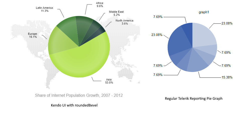 With the Pie Graph in Telerik reporting, the Pie looks kind of blah when we compare it to our Pie graph we use with Kendo UI.