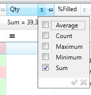 The feature is a formula button in the grid column header which has options to Sum, average, count, max, min the values. Once selected it inserts a special row under the header to show the results. If unselected it disappears. Attachment shows this.