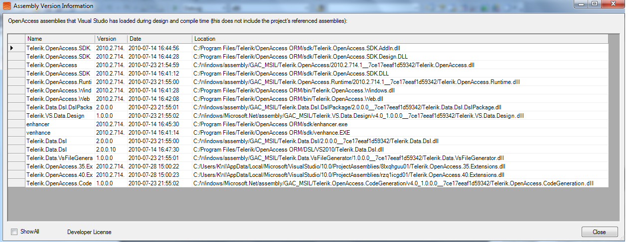 Failed to load types from assembly 'Telerik.OpenAccess.40.Extensions, Version=2010.1.527.2, Culture=neutral, PublicKeyToken=7ce17eeaf1d59342' so the assembly will be ignored.