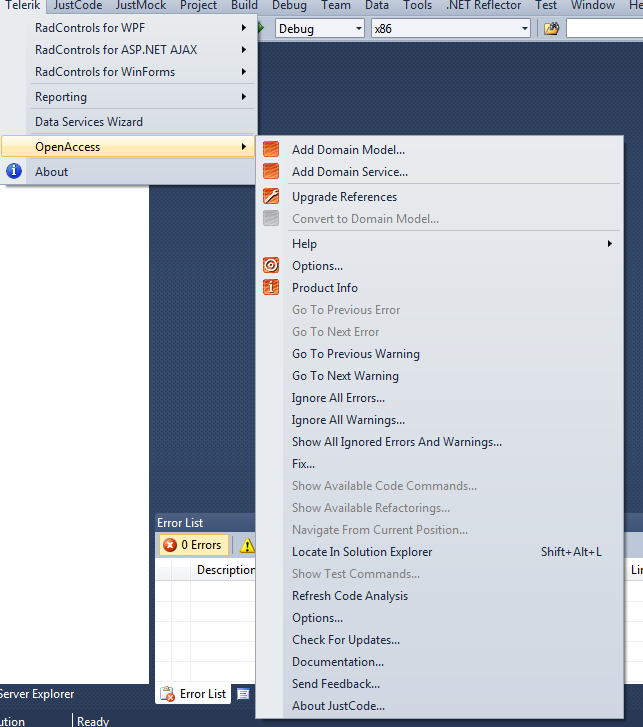 Firstly, I create a new Class Library project (DAL). Then I add new item, OA Domain Model.
