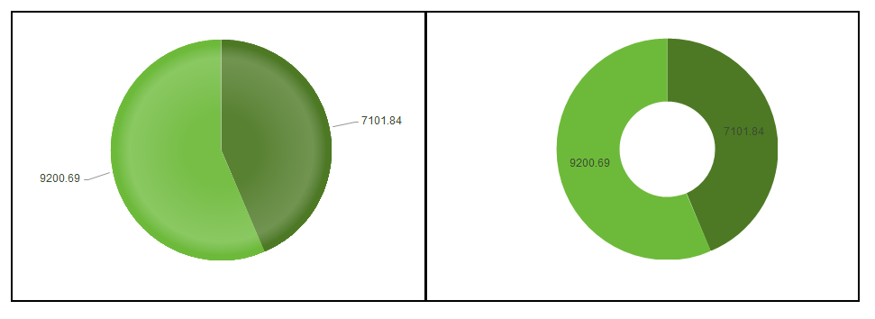 Attached an image with two screenshots of the same code, one with Pie, and the other with Donut.