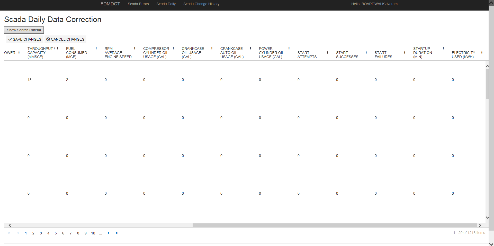 @{ ViewData["Title"] = "Scada Errors Data Correction";}@Html.AntiForgeryToken()<h2>Scada Errors Data Correction</h2><script type="text/javascript"> function getSearchParameters() { var region = getMultiSelectValues("regionSelect").toString(); var area = getMultiSelectValues("areaSelect").toString(); var asset = getMultiSelectValues("assetSelect").toString(); var errorType = getMultiSelectValues("errorTypeSelect").toString(); var dateFrom = $('#ReadingDateFrom').data('kendoDatePicker').value(); var dateTo = $('#ReadingDateTo').data('kendoDatePicker').value(); return { regions: region, areas: area, assets: asset, errorTypes: errorType, readingDateFrom: dateFrom, readingDateTo: dateTo }; } function triggerGridRefresh() { $('#grid').data('kendoGrid').dataSource.read(); $('#grid').data('kendoGrid').refresh(); } function getAssetData() { var locations = getMultiSelectValues("areaSelect"); return { text: $("#Asset").val(), location: locations.toString() }; } function changeRegion() { //debugger; var areaMultiSelect = $('#areaSelect').data('kendoMultiSelect'); var regionMultiSelect = $('#regionSelect').data('kendoMultiSelect'); var assetMultiSelect = $('#assetSelect').data('kendoMultiSelect'); var regionMS = getMultiSelectValues("regionSelect"); if (regionMS.toString() === '') { //reset the multiselects when you reset the first multiselect areaMultiSelect.options.placeholder = "Select Area(s)..."; areaMultiSelect.value([]); areaMultiSelect.enable(false); //clear out the asset multiselect too if (getMultiSelectValues("assetSelect").toString() !== '') { assetMultiSelect.options.placeholder = "hello!"; assetMultiSelect.value([]); assetMultiSelect.enable(false); } } else { areaMultiSelect.enable(); $('#areaSelect').data('kendoMultiSelect').dataSource.read(); } } function changeArea() { //var value = this.value() //debugger; var areaMultiSelect = $('#areaSelect').data('kendoMultiSelect'); var assetMultiSelect = $('#assetSelect').data('kendoMultiSelect'); var areaMS = getMultiSelectValues("areaSelect"); if (areaMS.toString() === '') { assetMultiSelect.options.placeholder = "Select Asset(s)..."; assetMultiSelect.value([]); assetMultiSelect.enable(false); } else { assetMultiSelect.enable(); $('#assetSelect').data('kendoMultiSelect').dataSource.read(); } } function changeAsset() { return; } function regionfilter() { //debugger; var regionMS = getMultiSelectValues("regionSelect"); var areaInput = $('#areaSelect').data('kendoMultiSelect'); var inputtext = areaInput.input.val(); return { text: inputtext, region: regionMS.toString() }; } function areafilter() { var areaMS = getMultiSelectValues("areaSelect"); var assetInput = $('#assetSelect').data('kendoMultiSelect'); var inputtext = assetInput.input.val(); return { text: inputtext, area: areaMS.toString() }; } function errorTypeFilter() { //var value = this.val(); //alert(value); } function getMultiSelectValues(multiSelectControl) { var multiSelect = $("#" + multiSelectControl).data("kendoMultiSelect"); var values = multiSelect.value($("#value").val()); return values; } (function ($, kendo) { //register custom validation rules $.extend(true, kendo.ui.validator, { rules: { // custom rules operatinghoursexceededvalidation: function (input, params) { var grid = $('#grid').data('kendoGrid'); var selectedRow = grid.dataItem('tr.k-grid-edit-row'); var maxHours = getMaxOperatingHours(); if (input.is("[name='Operating_hrs']") && input.val() !== "") { if (input.val() > maxHours) { return false; } } return true; }, downtimehoursexceededvalidation: function (input, params) { var grid = $('#grid').data('kendoGrid'); var selectedRow = grid.dataItem('tr.k-grid-edit-row'); var maxHours = getMaxOperatingHours(); if (input.is("[name='Ttl_downtime_hrs']") && input.val() !== "") { if (input.val() > maxHours) { return false; } } return true; } , totalhoursexceededvalidationDown: function (input, params) { var grid = $('#grid').data('kendoGrid'); var selectedRow = grid.dataItem('tr.k-grid-edit-row'); var maxHours = getMaxOperatingHours(); if (input.is("[name='Ttl_downtime_hrs']") && input.val() !== "") { //debugger; var operatingHours = parseFloat(selectedRow.Operating_hrs); var downtimeHours = parseFloat(input.val()); if (downtimeHours + operatingHours > maxHours) { return false; } } return true; }, totalhoursexceededvalidationUp: function (input, params) { var grid = $('#grid').data('kendoGrid'); var selectedRow = grid.dataItem('tr.k-grid-edit-row'); var maxHours = getMaxOperatingHours(); if (input.is("[name='Operating_hrs']") && input.val() !== "") { //debugger; var operatingHours = parseFloat(input.val()); var downtimeHours = parseFloat(selectedRow.Ttl_downtime_hrs); if (downtimeHours + operatingHours > maxHours) { return false; } } return true; } }, messages: { //custom rules messages operatinghoursexceededvalidation: "Operating Hours cannot exceed maximum possible hours for this date.", downtimehoursexceededvalidation: "Downtime Hours cannot exceed maximum possible hours for this date.", totalhoursexceededvalidationDown: "Sum of downtime and operating hours exceeds maximum possible hours for this date", totalhoursexceededvalidationUp: "Sum of Operating and Downtime hours exceeds maximum possible hours for this date" } }); })(jQuery, kendo); function error_handler(args) { if (args.errors) { var grid = $("#grid").data("kendoGrid"); grid.one("dataBinding", function (e) { e.preventDefault(); // cancel grid rebind if error occurs var fieldCellIndices = {}, dataSource = grid.dataSource, errors = args.errors; //get current column indexes for (var i = 0; i < grid.columns.length; i++) { if (grid.columns[i].field) { fieldCellIndices[grid.columns[i].field] = i; } } for (var k = 0; k < errors.length; k++) { var error = errors[k], item = dataSource.get(error.id), row = grid.table.find("tr[data-uid='" + item.uid + "']"); for (var j = 0; j < error.errors.length; j++) { var field = error.errors[j].field, message = error.errors[j].message; //find the cell var container = row.find("td:eq(