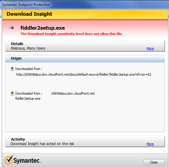 attached is the Symantec screen displaying the download link (<mixed characters>.cloudfront.net....).