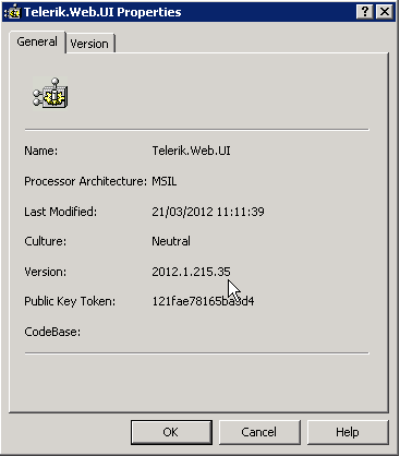 Uninstall the current version of RadControls and the install again the desired one(2012.1.215);