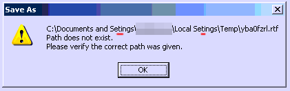I tried reproducing the problem with repeated chars in folder save name, but couldn't - I tried it on both Windows XP with IE8 and Windows7 with IE8. In both cases the path if existant is properly shown and file saved. The only time I got to see this error message was when the path was not existant on the hard drive.