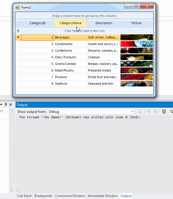 public Form1(){ InitializeComponent(); RadDragDropService svc = this.radGridView1.GridViewElement.GetService<RadDragDropService>(); svc.PreviewDragStart += svc_PreviewDragStart; svc.PreviewDragDrop += svc_PreviewDragDrop; svc.PreviewDragOver += svc_PreviewDragOver; svc.PreviewDropTarget += svc_PreviewDropTarget; //register the custom row selection behavior var gridBehavior = this.radGridView1.GridBehavior as BaseGridBehavior; gridBehavior.UnregisterBehavior(typeof(GridViewDataRowInfo)); gridBehavior.RegisterBehavior(typeof(GridViewDataRowInfo), new RowSelectionGridBehavior());}//initiates drag and drop service for clicked rowspublic class RowSelectionGridBehavior : GridDataRowBehavior{ protected override bool OnMouseDownLeft(MouseEventArgs e) { GridDataRowElement row = this.GetRowAtPoint(e.Location) as GridDataRowElement; if (row != null) { RadGridViewDragDropService svc = this.GridViewElement.GetService<RadGridViewDragDropService>(); svc.AllowAutoScrollColumnsWhileDragging = false; svc.AllowAutoScrollRowsWhileDragging = false; svc.Start(row); } return base.OnMouseDownLeft(e); }}//required to initiate drag and drop when grid is in bound modeprivate void svc_PreviewDragStart(object sender, PreviewDragStartEventArgs e){ e.CanStart = true;}private void svc_PreviewDragOver(object sender, RadDragOverEventArgs e){ if (e.DragInstance is GridDataRowElement) { e.CanDrop = e.HitTarget is GridDataRowElement || e.HitTarget is GridTableElement || e.HitTarget is GridSummaryRowElement; }}GridDataCellElement targetCellElement = null;private void svc_PreviewDropTarget(object sender, PreviewDropTargetEventArgs e){ if (e.HitTarget is GridDataCellElement) { targetCellElement = e.HitTarget as GridDataCellElement; }}//gather drag/source grid and target/destination information and initiate the move of selected rowsprivate void svc_PreviewDragDrop(object sender, RadDropEventArgs e){ var rowElement = e.DragInstance as GridDataRowElement; if (rowElement == null) { return; } e.Handled = true; GridDataRowElement targetRowElement = e.HitTarget as GridDataRowElement; if (targetCellElement != null) { Console.WriteLine(targetCellElement.ColumnInfo.Name); }}I hope this information helps. Should you have further questions I would be glad to help.