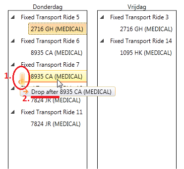 I'm using the drag and drop functionality of the RadTreeView, with a hierarchical list of transportation rides with multiple addresses.