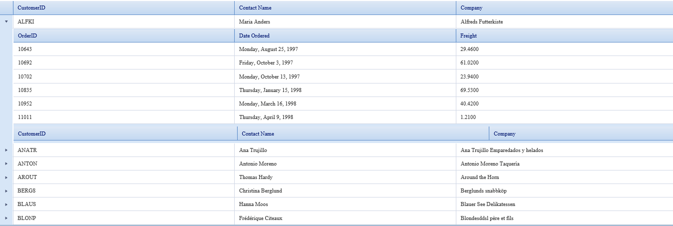 Our requirement is to enable parent header for child grid whenever the item is expanded.. we are already able to achieve this. however unable to bring all the other feature. please help us.