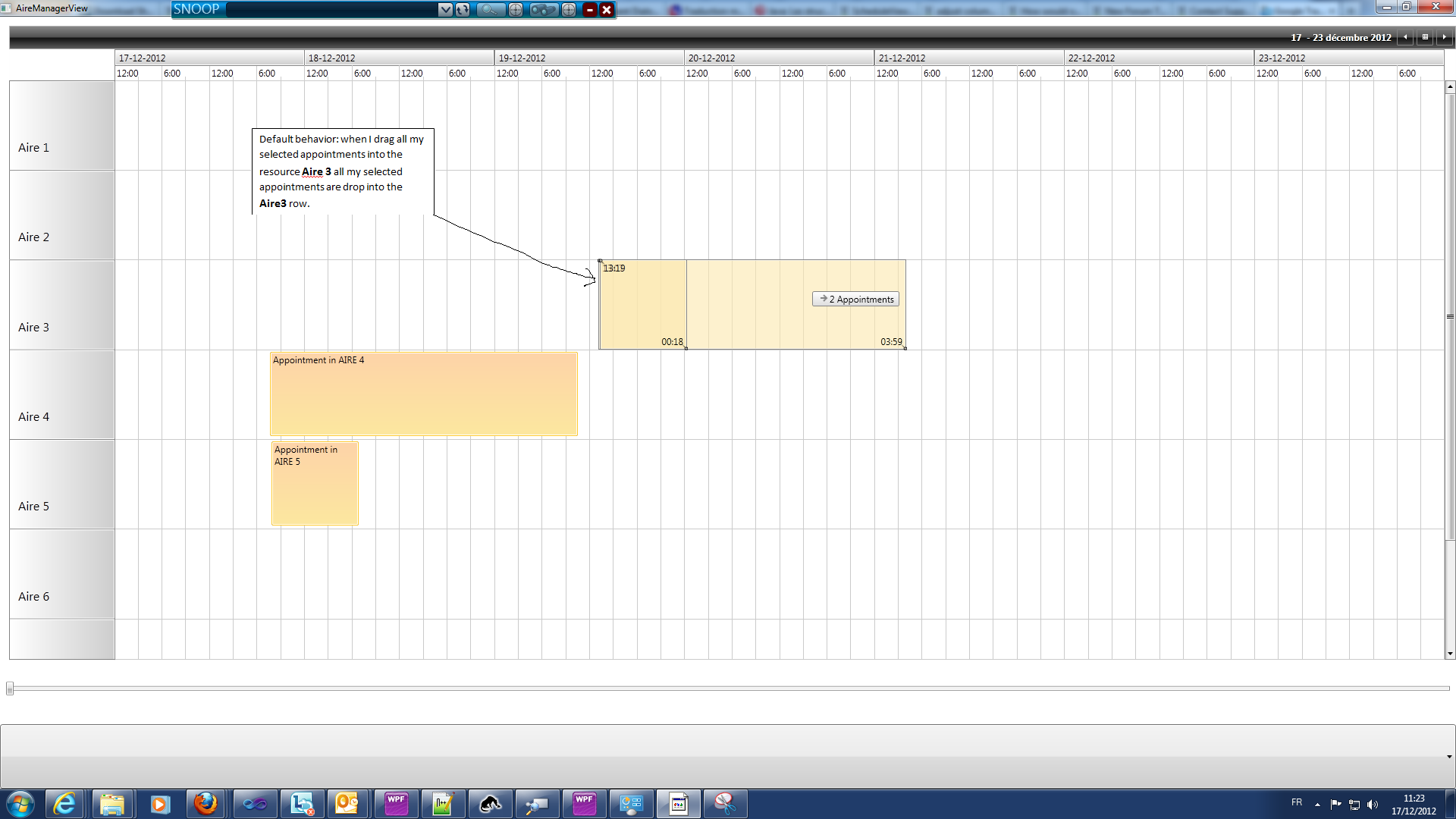 I would like to drag and drop multiple appointment located in several different resources. The default behavior of scheduleView is that all appointments are dropped into the pointed resource row on mouse release. What I want is a slide up or down of each item selected, keeping them at the same distance from each other's at the mouse release. You will see what I really want on attached pictures.