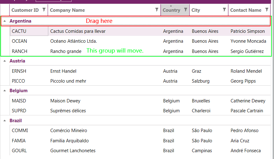 How do I drag drop a group in the GridView to change Group's order?