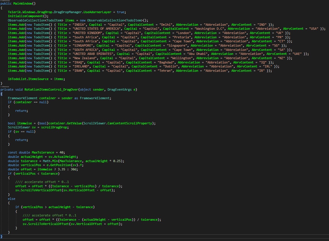 As Observed scrolling does not work from top to botton dragging items but it works bottom to top drag items. When I tried to use DisplayMemberPath everything works fine top to bottom drag and bottom to top drag item.