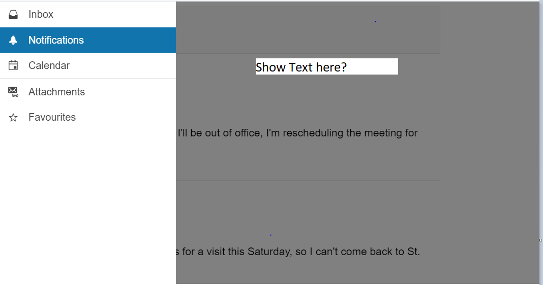 That is exactly what I want, I want to display different forms or other contents as a part of overlay when menu is open. For example, I select something in a main page, and then want to have additional actions for that on menu with overlay - eg. editing data in form, showing more details etc. So when I select option (or sub-option in hierarchy) different elements show in overlay.