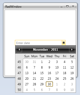 <telerik:RadDatePicker Grid.Row="1" Grid.Column="1" DateSelectionMode="Day" InputMode="DatePicker"/>why is this happening?