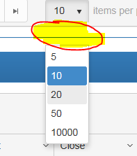 For example, if my grid has 30 items, and the default page size is 10, I can select 5, and then select 10 again and again and again. But, if I select 20 for page size, I get the 20 items, but afterwards I don't have the ability to select anything else.