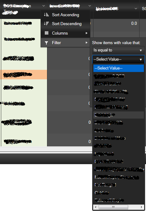 { field: "DOSExceptionCategory", title: "DOS Exception Category", width: 150, locked: false, lockable: false, filterable: { ui: exceptionCategoryFilter }, headerAttributes: { style: "overflow: visible; white-space: normal" } }The setup of the dropdownlist filter: