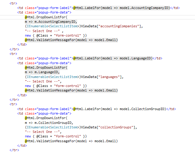 I have an MVC KendoGrid with a custom popup editor that contains 3 select lists using razor DropDownListFor html helpers. I am using the optionLabel parameter on the helper to show "-- Select One --" empty option when creating a new record, but it is not being selected for 2 selects that have integer values. The other select that has a string type for value in the model is showing the "-- Select One --" corrrectly. Is there something I can do to have it selected in all 3 dropdown lists for new records?