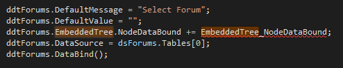 In your above example, the right side of RadDropDownTree1.EmbeddedTree.NodeDataBound += EmbeddedTree_NodeDataBound does not resolve for me. See attached image.