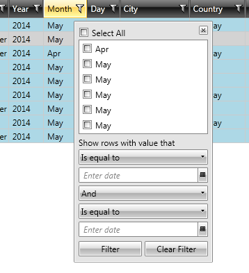 Happens that when I try to filter the rows via the GridView filters I get duplicate entries there: