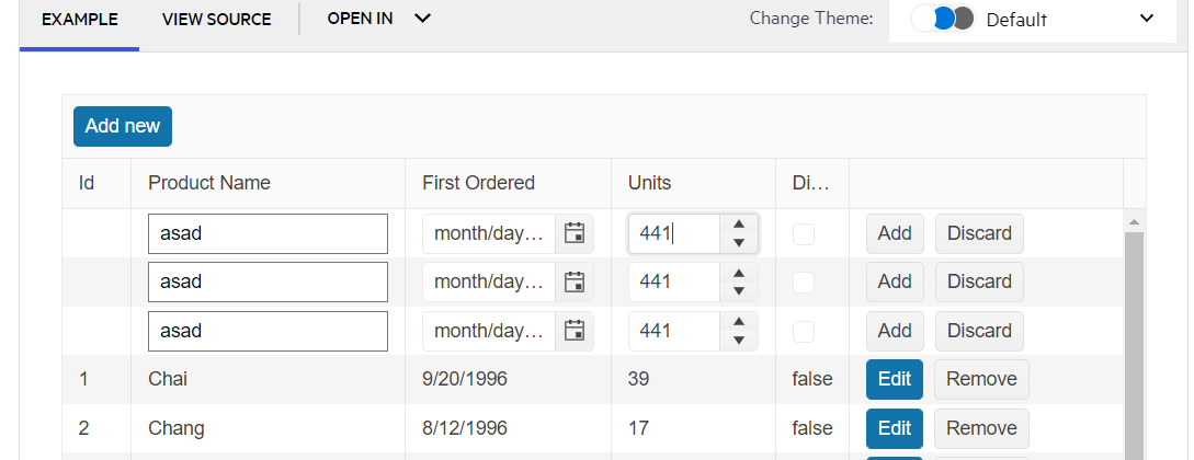 In inLine Edit Field when Adding new Line or create multiple lines with the add new button the input field is duplicating when editing one field. ie, You can now type on the different input and observe duplicates