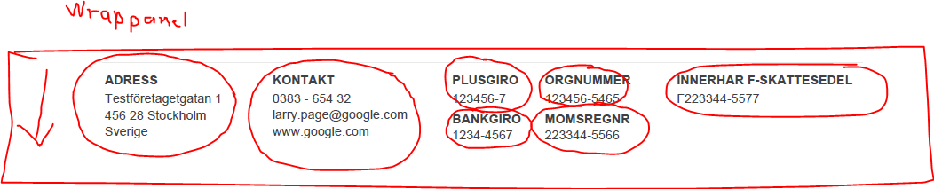 <WrapPanel Orientation="Vertical"/>. This WrapPanel has an itemsource of List<FooterPart>. The FooterPart object contains a title(going to be viewed as bold) and a body that can contain more than one line.Please look at the attached picture. The WrapPanel will place the parts in such a way that if the parts only have a body consisting of one line, two of them can exist in the same column, if not, only one part will exist in the column.