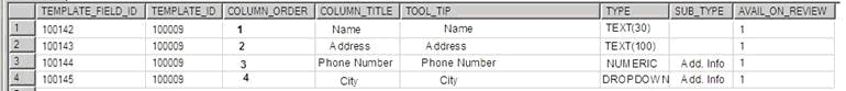 We have another table that contains the structure of the grid. In this table TEMPLATE_FIELD_ID is the primary key whereas TEMPLATE_ID is the foreign key that defines the TEMPLATE or grid to which these columns belong to.Refer to image Post4.png