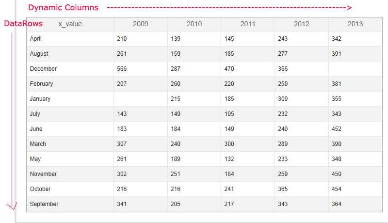 Hey, I have a grid being created dynamically from a manually built pivot table with includes a variable number of columns and a variable number of rows.