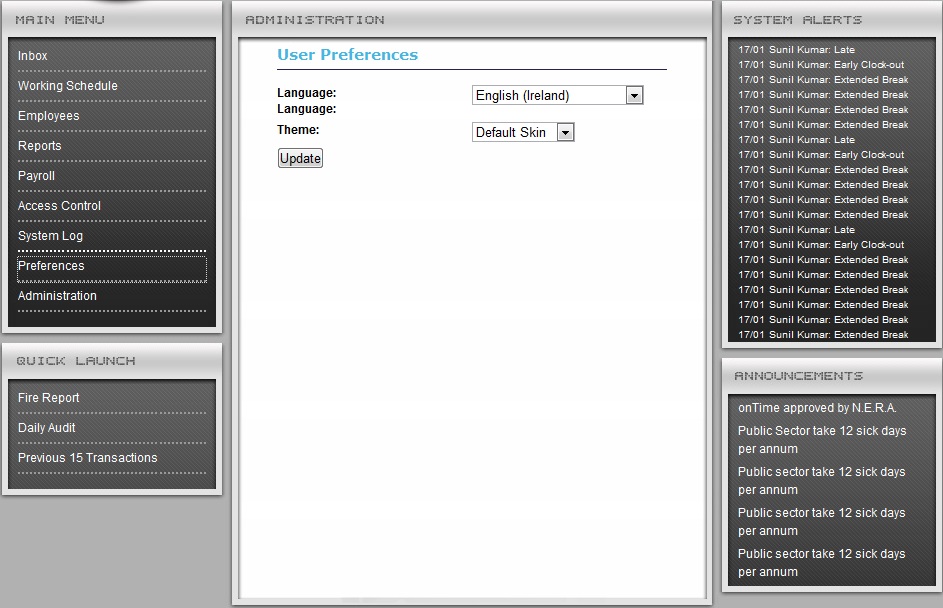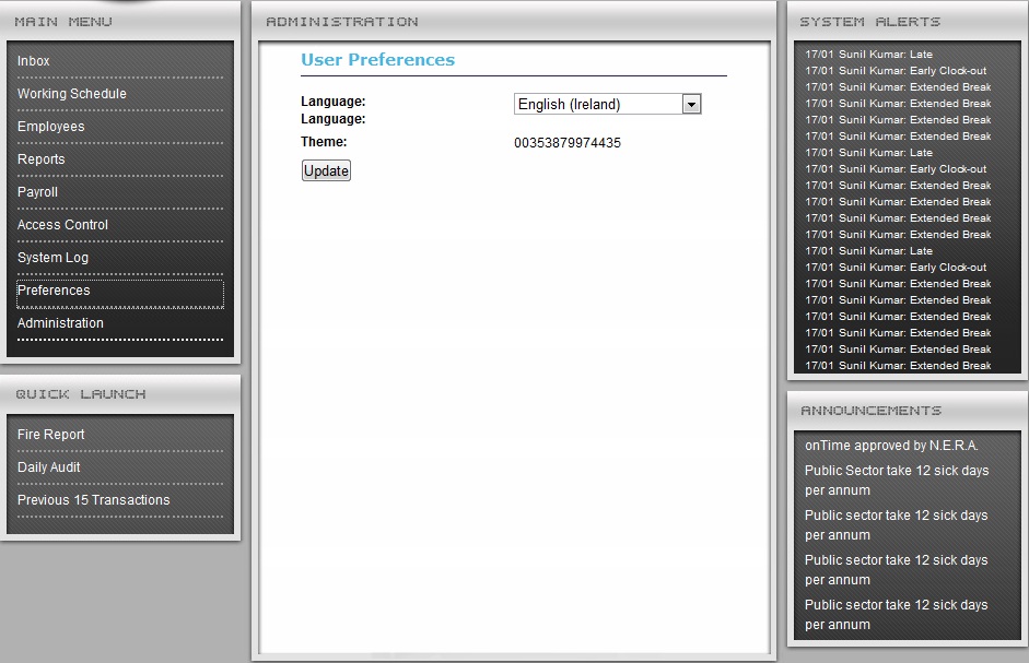Now if I click on the USER PREFERENCES link on the left menu which loads: