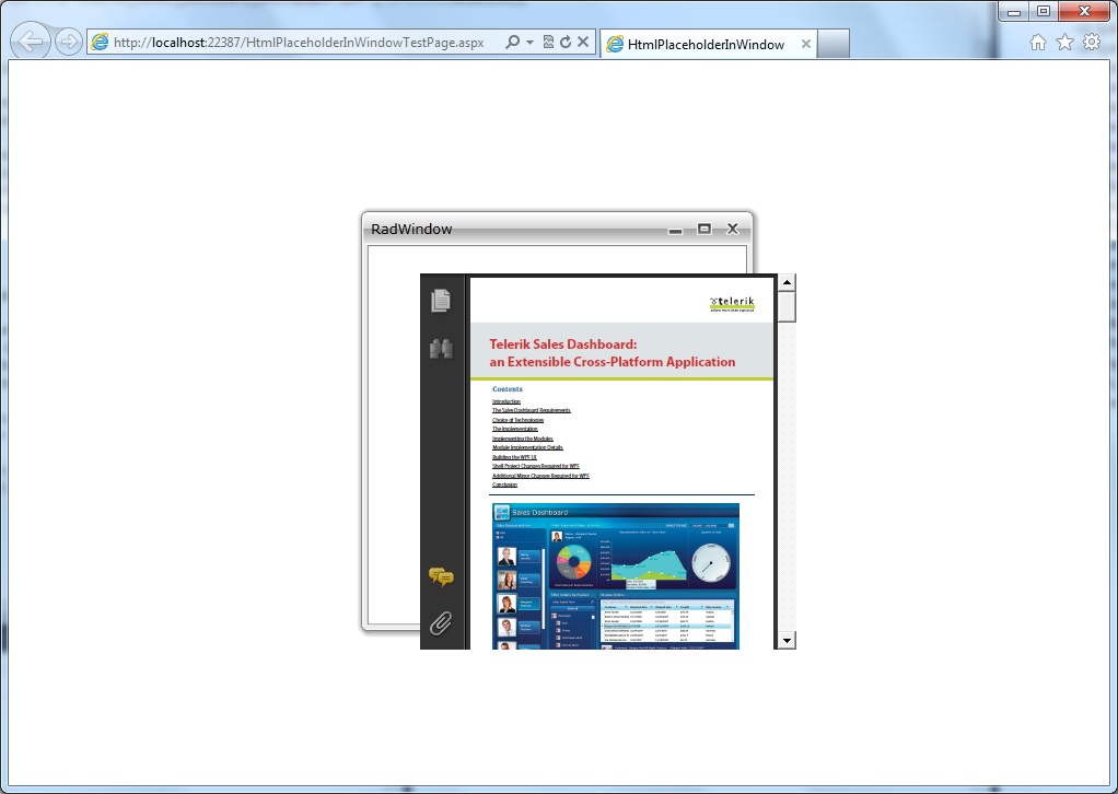 We're using RadHtmlPlaceholder in RadWindow to display PDF files.