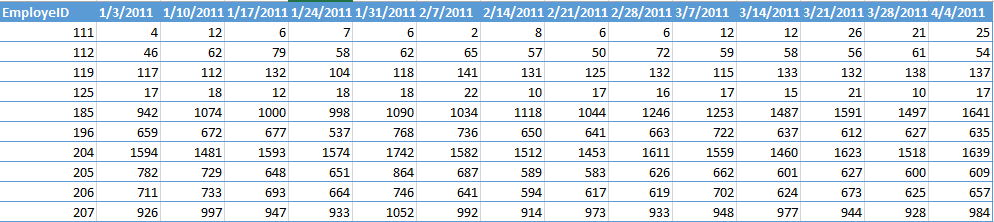 We are still in the Research phase of a project where we are trying to report total weekly sales (by number of items) for each Employee ID that is pulled from the database. Because the number of employees change regularly or we may want to filter results to employees from a particular store we have no idea at runtime how many lines we will need for our line chart. I was wondering if anyone has figured out how to dynamically bind this information.