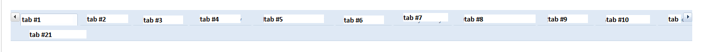 I think the width of the tab and the text length in each tab is creating a problem. But due to my requirement i have to mention a fixed width to the tab strip.