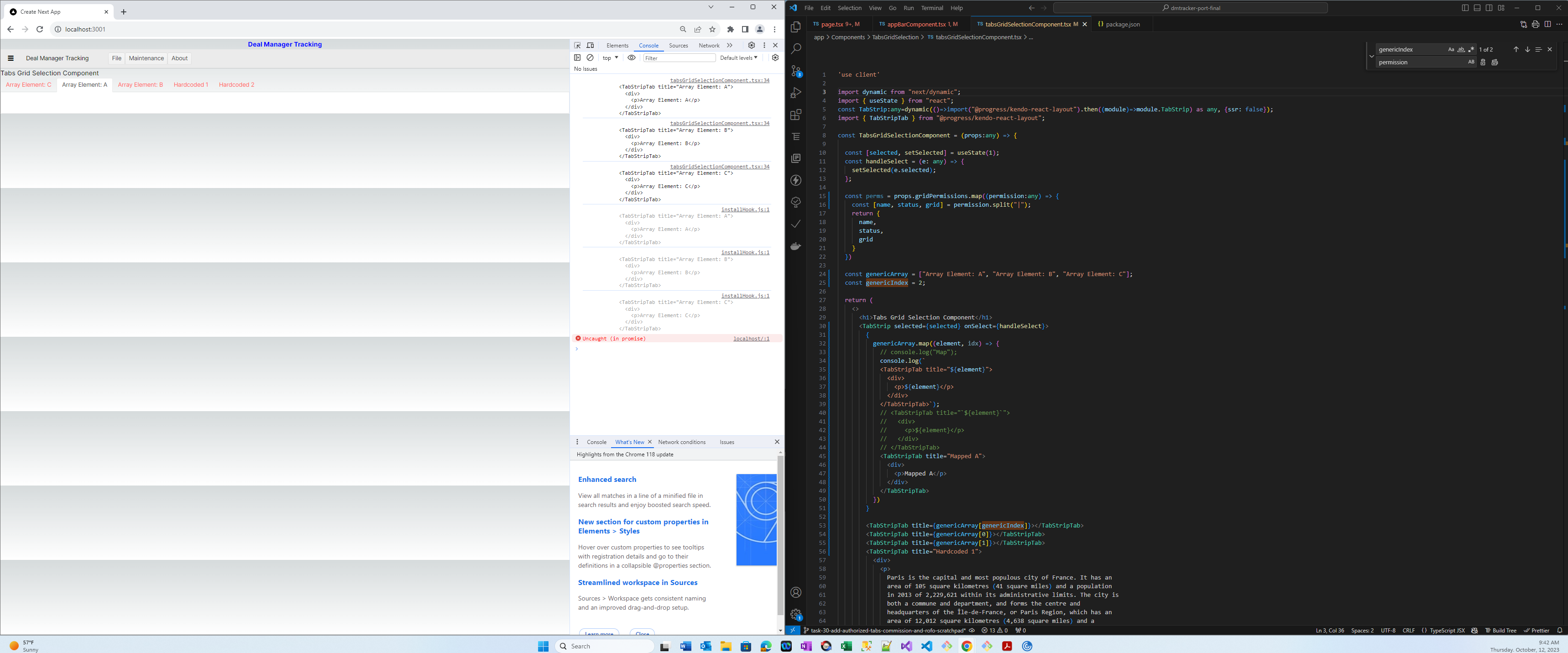 In order to be rendered, the dynamically created tabs in the `map` function have to be wrapped inside a return statement.
