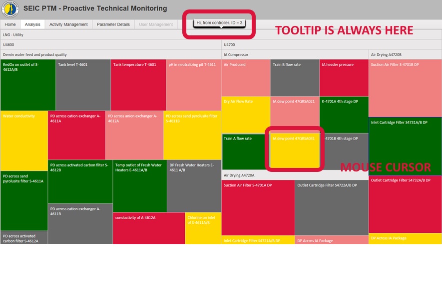 I am trying to add dynamic tooltip to treemap by using ajax function. Tooltip contents are synamic based on id of treemap element. So i decided to use ajax function in content of tooltip, Ajax will call to controller and return "Text" string content. When i wrote below to achieve this tooltip is blank without any content. I think i did some syntax error. Sorry i could not able to find relevant example also.