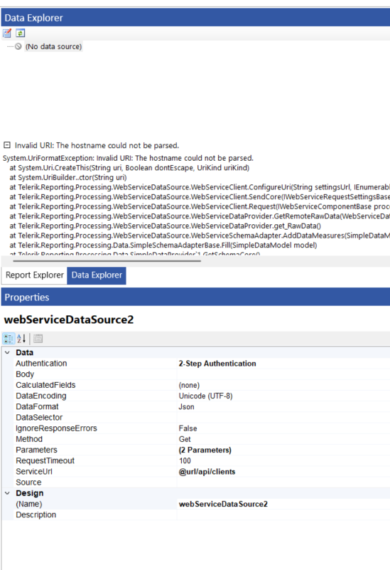I am designing a report using Telerik Report Designer and have connected multiple Web Service Data Sources that require 2-step authentication.