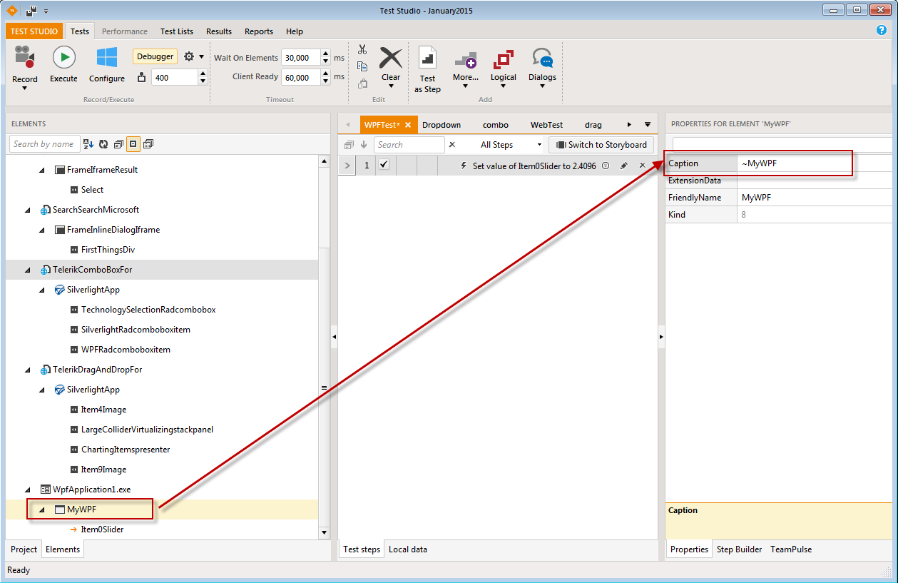 Hi. I have just started evaluating Test Studio to test our WPF application. Our application title contains the application version number and therefore changes after each upgrade. I created a test aginst version 1 and then upgraded the application to version 2, but when I run the test now it is still looking for controls in application v1. e.g. the PrimaryTarget field contain the application title with version 1. Is there a way to make this work? Thanks.
