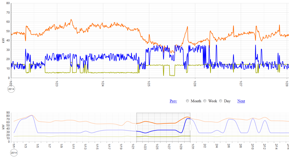We plan to use 2 charts on a page, one will be a selection/navigation chart (like this one: http://demos.telerik.com/kendo-ui/chart-api/selection) used to select date range. 2nd chart will be a line chart with multiple series. (screen cap attached)