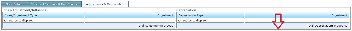 The second image shows another tab with no content in the grids. The red arrow points at the bottom border of the page view's content. Again, the border is appropriately placed to show the content of the tab.