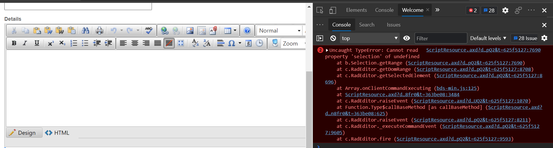 at c.RadEditor.getDomRange (ScriptResource.axd?d=1pANZXkYj8w95800cdzDw3ePX2Pnkpqo09jxY-cc1mtbsgPN1xSfXYr4g7wU8rQARuL-BCbY9EPBdrOz3I9jvdbntCG9LfRu18xiTHboY2dCng0HEbu3247-4j0PX0y_NvjwpQ2&t=625f5127:8708)