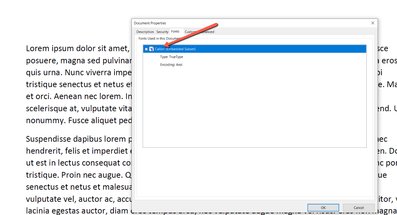 Also, when I look at the text fragment item, it shows the font as a truetype.