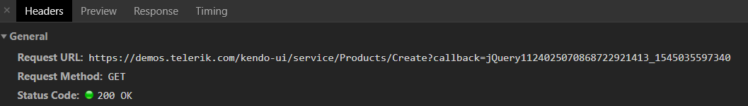 For convenience I created small jsBin example which use the KendoUI demo service to load the grid with data.