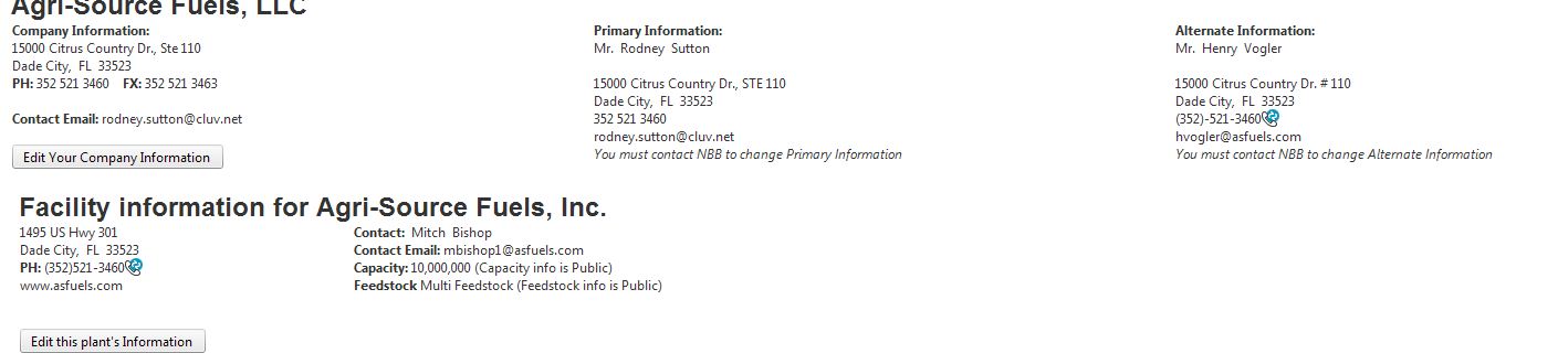 <form id="form1" runat="server"> <telerik:RadScriptManager ID="RadScriptManager1" runat="server" CdnSettings-TelerikCdn="Enabled"> <Scripts> <%--Needed for JavaScript IntelliSense in VS2010--%> <%--For VS2008 replace RadScriptManager with ScriptManager--%> <asp:ScriptReference Assembly="Telerik.Web.UI" Name="Telerik.Web.UI.Common.Core.js" /> <asp:ScriptReference Assembly="Telerik.Web.UI" Name="Telerik.Web.UI.Common.jQuery.js" /> <asp:ScriptReference Assembly="Telerik.Web.UI" Name="Telerik.Web.UI.Common.jQueryInclude.js" /> </Scripts> </telerik:RadScriptManager> <script type="text/javascript"> var popUp; function PopUpShowing(sender, eventArgs) { popUp = eventArgs.get_popUp(); var gridWidth = sender.get_element().offsetWidth; var gridHeight = sender.get_element().offsetHeight; var popUpWidth = popUp.style.width.substr(0, popUp.style.width.indexOf("px")); var popUpHeight = popUp.style.height.substr(0, popUp.style.height.indexOf("px")); popUp.style.left = ((gridWidth - popUpWidth) / 2 + sender.get_element().offsetLeft).toString() + "px"; } </script> <telerik:RadAjaxManager ID="RadAjaxManager1" runat="server"> <AjaxSettings> <telerik:AjaxSetting AjaxControlID="Panel1"> <UpdatedControls> <telerik:AjaxUpdatedControl ControlID="Panel1" /> </UpdatedControls> </telerik:AjaxSetting> </AjaxSettings> </telerik:RadAjaxManager> <div> <br /> Not dolled up yet to fit into the site but here is the preliminary edit form for companies to update thier information.<br /> <a href="Default.aspx">Select another company</a> <br /> <span class="style1"><strong>CAUTION: This data is LIVE!! </strong></span> <asp:Panel ID="Panel1" runat="server"> <p id="divMsgs" runat="server"> <asp:Label ID="Label1" runat="server" EnableViewState="False" Font-Bold="True" ForeColor="#FF8080"></asp:Label> <asp:Label ID="Label2" runat="server" EnableViewState="False" Font-Bold="True" ForeColor="#00C000"></asp:Label> </p> <telerik:RadGrid ID="RadGrid1" runat="server" AllowAutomaticUpdates="True" AutoGenerateColumns="False" CellSpacing="0" DataSourceID="SqlDataSource1" GridLines="None" Skin="Vista" Culture="en-ZW" EnableEmbeddedBaseStylesheet="False" EnableTheming="False" BorderStyle="None"> <MasterTableView DataKeyNames="CompanyID" DataSourceID="SqlDataSource1" CommandItemDisplay="None" AllowAutomaticUpdates="true" ShowHeader="False" HierarchyDefaultExpanded="true" EditMode="PopUp"> <DetailTables> <telerik:GridTableView runat="server" DataKeyNames="FacilityID" DataSourceID="SqlDataSource2" ShowHeader="False" AllowAutomaticUpdates="true" EditMode="PopUp"> <ParentTableRelation> <telerik:GridRelationFields DetailKeyField="CompanyID" MasterKeyField="CompanyID" /> </ParentTableRelation> <Columns> <telerik:GridBoundColumn DataField="FacilityID" DataType="System.Int32" ReadOnly="True" UniqueName="FacilityID" Visible="false"> </telerik:GridBoundColumn> <telerik:GridTemplateColumn UniqueName="TemplateColumn"> <ItemTemplate> <div id="content" class="divTable"> <div id="divHeader" class="divHeaderTable"> Facility information for <asp:Label ID="Name" runat="server" Text=' <%# Eval("FacilityName") %>'></asp:Label> </div> <div class="divRow"> <div class="divColumn" style="text-align: left; width: 300px;"> <div> <asp:Label ID="Address1" runat="server" Text='<%# Eval("Address") %>'></asp:Label><br /> <asp:Label ID="Label5" runat="server" Text='<%# Eval("City") %>'></asp:Label>, <asp:Label ID="Label6" runat="server" Text='<%# Eval("State") %>'></asp:Label> <asp:Label ID="Label7" runat="server" Text='<%# Eval("Zip") %>'></asp:Label><br /> <strong>PH:</strong> <asp:Label ID="Label15" runat="server" Text='<%# Eval("Phone") %>'></asp:Label><br /> <asp:Label ID="Label17" runat="server" Text='<%# Eval("Website") %>'></asp:Label><br /> <br /> <br /> <telerik:RadButton ID="RadButton2d" runat="server" Text="Edit this plant's Information" CommandName="Edit"> </telerik:RadButton> </div> </div> <div class="divColumn" style="text-align: left; width: 400px;"> <div> <strong>Contact: </strong> <asp:Label ID="Label16" runat="server" Text='<%# Eval("Contact_First") %>'></asp:Label> <asp:Label ID="Label30" runat="server" Text='<%# Eval("Contact_Last") %>'></asp:Label><br /> <strong>Contact Email: </strong><asp:Label ID="Label18" runat="server" Text='<%# Eval("Email") %>'></asp:Label><br /> <strong>Capacity: </strong><asp:Label ID="Label31" runat="server" Text='<%# Format(Eval("NamePlateCapacity"),"##,###,###,###") %>'></asp:Label> <asp:Label ID="Label33" runat="server" Text='<%# IIF(eval("CapacityInfoPublic"),"(Capacity info is Public)","(Capacity info is not Public)") %>'></asp:Label><br /> <strong>Feedstock</strong> <asp:Label ID="Label32" runat="server" Text='<%#Eval("Feedstock") %>'> </asp:Label> <asp:Label ID="Label3a4" runat="server" Text='<%# IIF(eval("CapacityInfoPublic"),"(Feedstock info is Public)","(Feedstock info is not Public)") %>'></asp:Label> <br /> <br /> </div> </div> </div> </div> </div> </ItemTemplate> </telerik:GridTemplateColumn> </Columns> <EditFormSettings EditFormType="Template" FormTableStyle-Width="400px"> <EditColumn FilterControlAltText="Filter EditCommandColumn column"> </EditColumn> <FormTableStyle Width="400px" /> <FormTemplate> <div id="content" class="divTable"> <div id="divHeader" class="divHeaderTable"> <asp:Label ID="lblName" runat="server" Text='<%# Bind("FacilityName") %>'></asp:Label> </div> <div class="divRow"> <div class="divColumn" style="text-align: left; width: 400px;"> <div> Address:<br /> <telerik:RadTextBox ID="RadTextBox1" runat="server" Text='<%# Bind("Address") %>' Width=" 225px"> </telerik:RadTextBox> <br /> City:<br /> <telerik:RadTextBox ID="RadTextBox4" runat="server" Text='<%# Bind("City") %>' Width=" 225px"> </telerik:RadTextBox> <br /> State:<br /> <telerik:RadComboBox ID="State" runat="server" SelectedValue='<%# bind("State") %>' Skin="Windows7"> <Items> <telerik:RadComboBoxItem runat="server" Text="Alabama" Value="AL" /> <telerik:RadComboBoxItem runat="server" Text="Alaska" Value="AK" /> <telerik:RadComboBoxItem