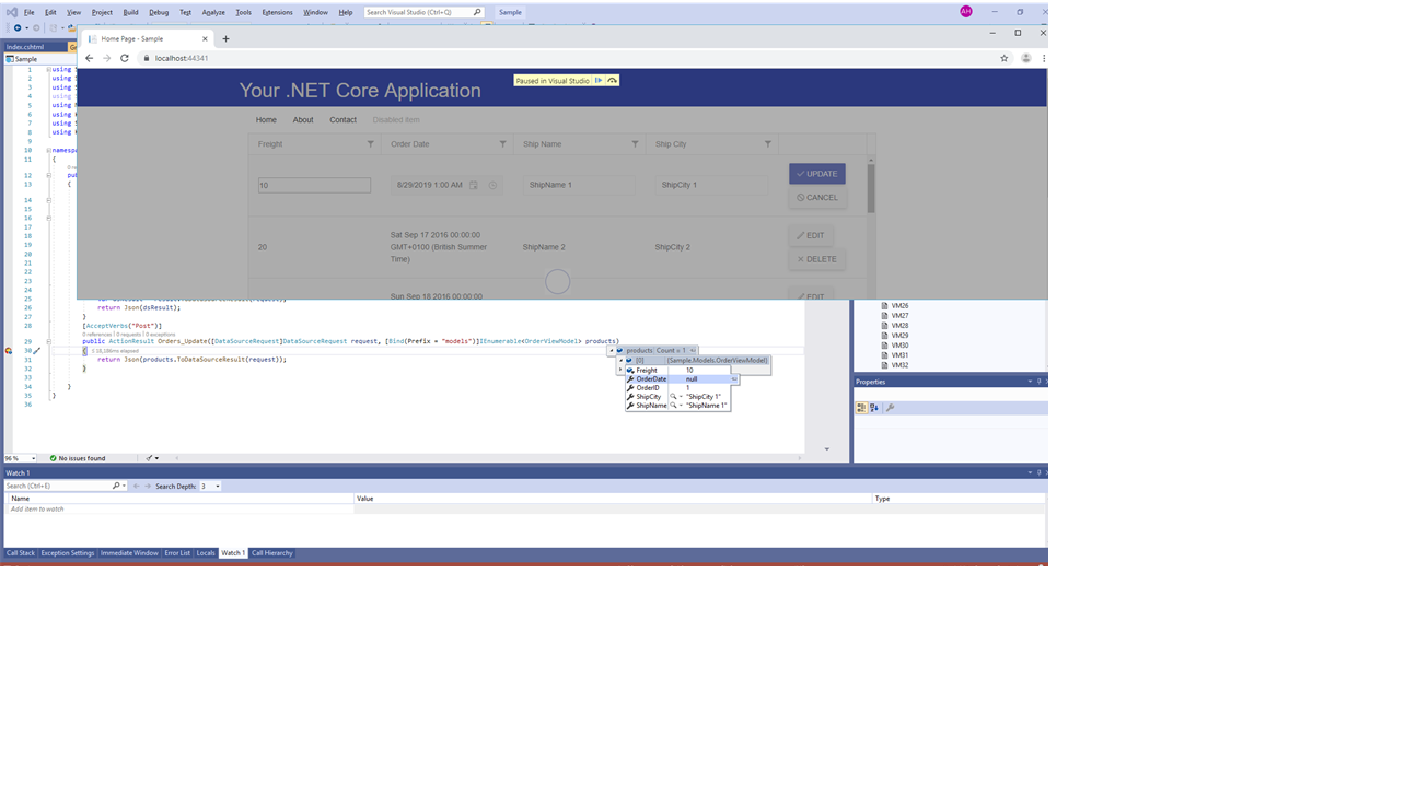 public ActionResult Orders_Update([DataSourceRequest]DataSourceRequest request, [Bind(Prefix = "models")]IEnumerable<OrderViewModel> products)